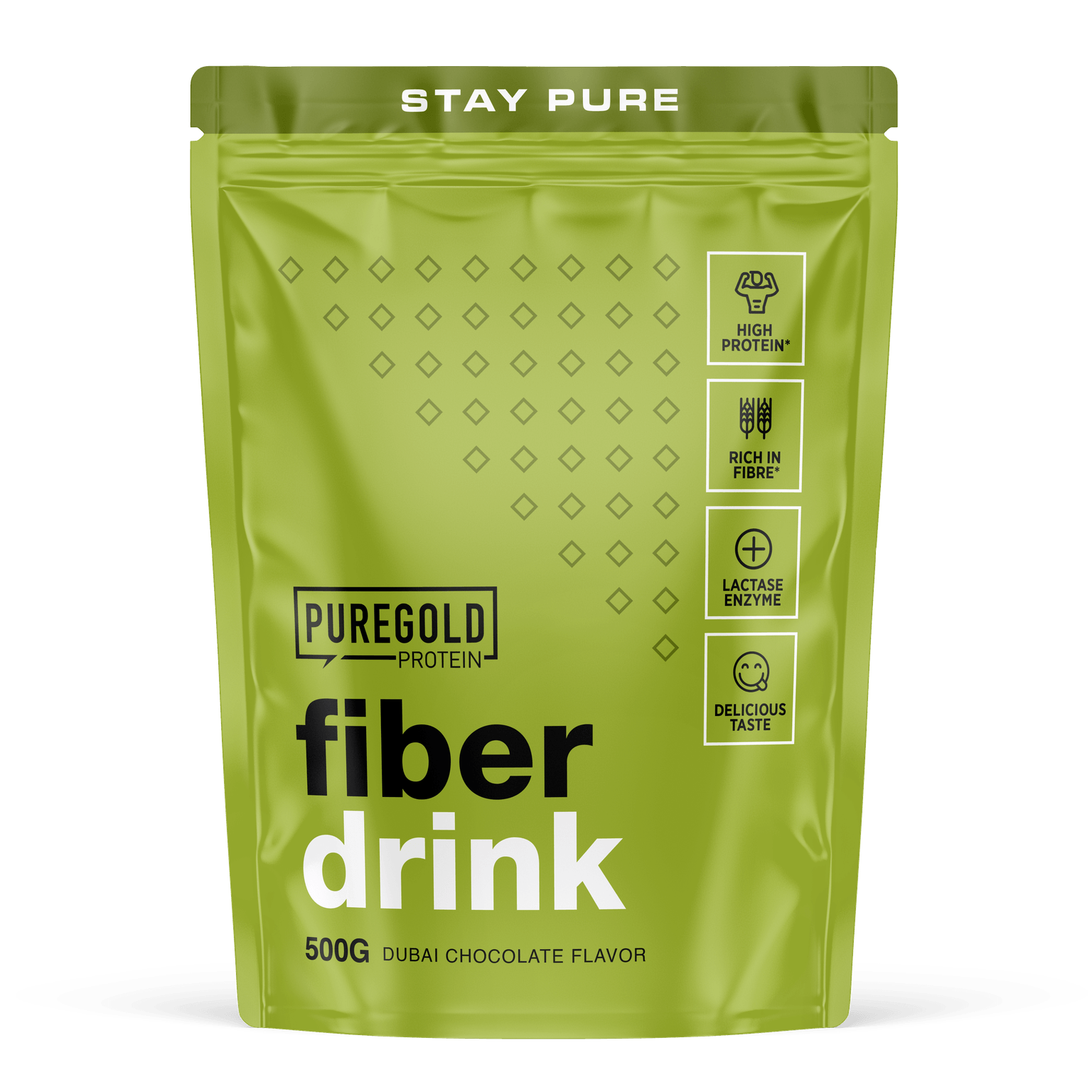 Proizvod Pure Gold Fiber Drink je poseban proteinski napitak u prahu, s bogatim sadržajem vlakana, s 12 grama vlakana po porciji. Savršen je izbor ako želiš istodobno podržati probavu, mišiće i uravnotežen, odgovarajući dnevni unos vlakana. Ovaj proteinski shake bogat vlaknima ima kompleksan sastav, s dodatkom brašna od ljuske indijskog trputca (psylliuma), inulina i glukomanana, a sadrži i dodani enzim laktazu za lakšu probavljivost i ugodan okus.