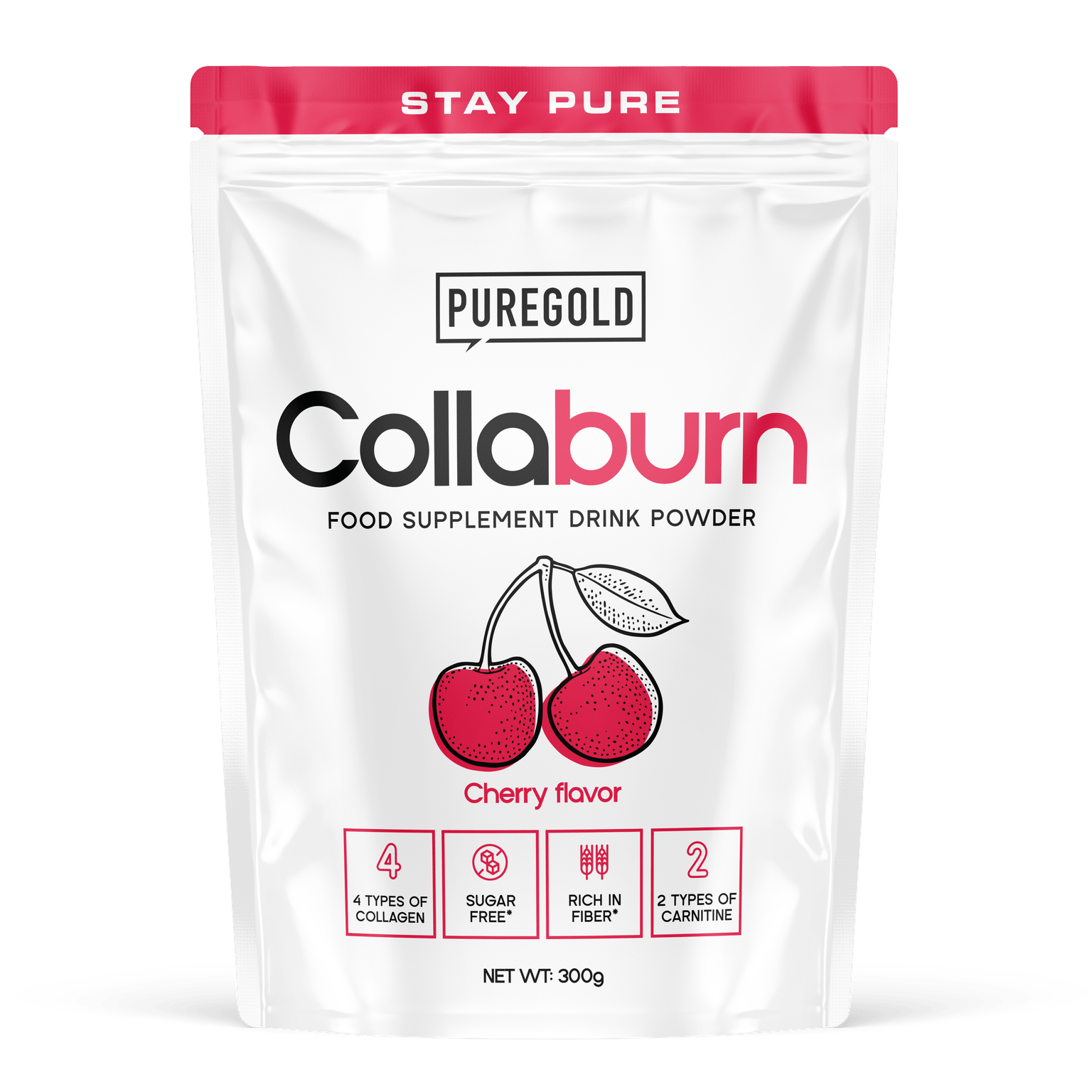 Pure Gold CollaBurn je kompleksna kolagenska formula koja ne samo da podupire stanje kože, kose i noktiju, već može pomoći i u smanjenju tjelesne mase zahvaljujući glukomananu prisutnom u proizvodu. Uz 4 vrste hidroliziranog goveđeg kolagena sadrži i dvije vrste L-karnitina, glukomanan, inulin i konjugiranu linolnu kiselinu (CLA) – alternativa bogata vlaknima, bez šećera, idealna i uz aktivan stil života ili dijetu. Zahvaljujući voćnom okusu, njezina je konzumacija pravo zadovoljstvo.