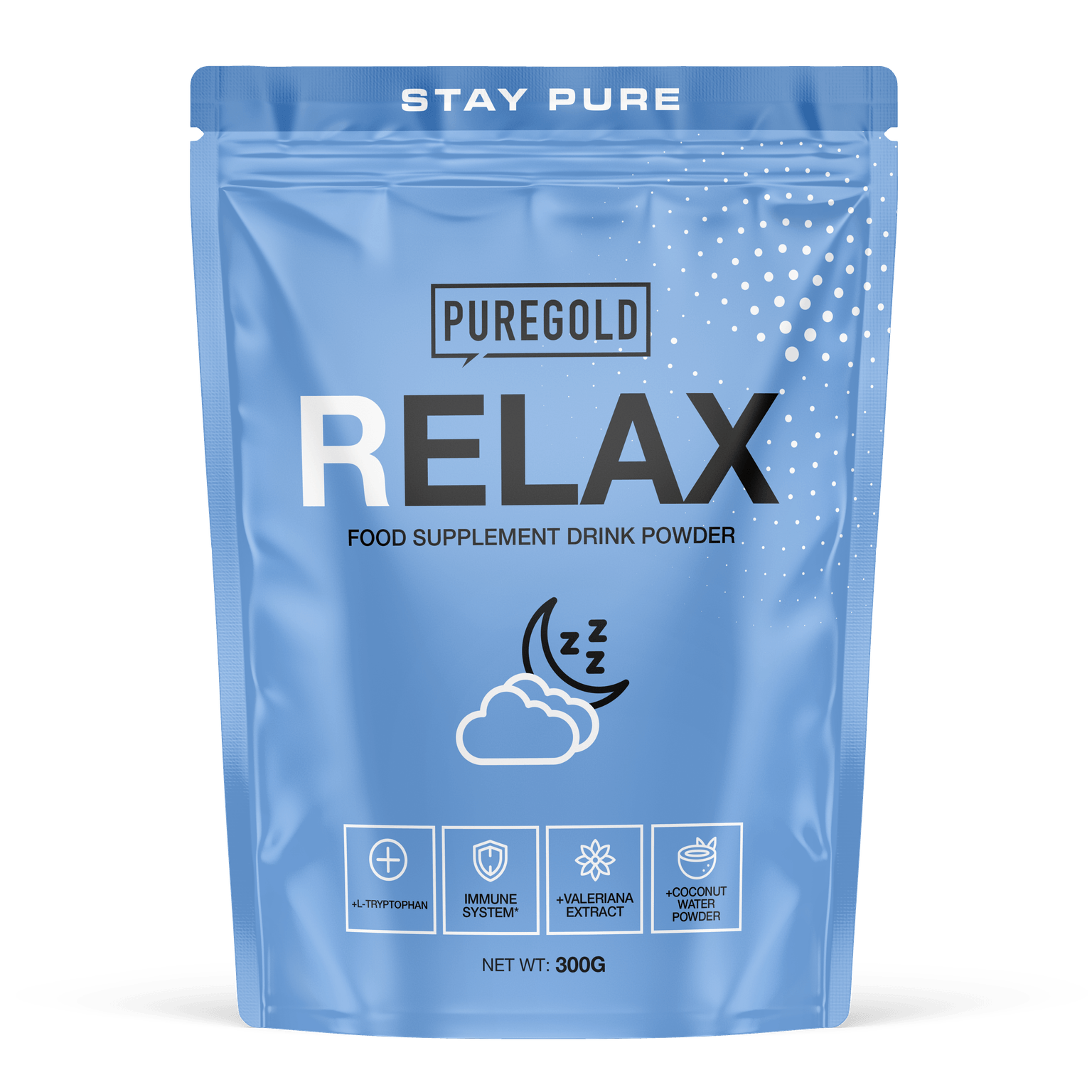 RelaxPure Gold Relax aromatizirani dodatak prehrani u prahu za napitak s dodatkom hidroliziranog goveđeg kolagena, inulina, triptofana, praha kokosove vode, magnezija, biljnih ekstrakata, vitamina D i zaslađivača.