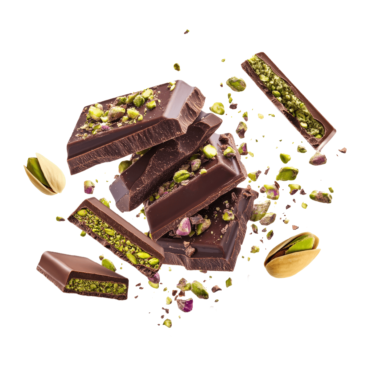 Sastojci: 28 % kakaov mlijeko premaz sa zaslađivačem (zaslađivač: maltitol, palmino jezgreno ulje, kakao prah, slatka sirutka, mlijeko u prahu, obrano mlijeko u prahu, emulgator: sojin lecitin), ovlaživač: glicerin, 12 % krema od pistacije s kadayifom i zaslađivačem (zaslađivači: maltitol, sorbitol, biljna ulja: uljane repice, suncokreta, palme; kadayif: pšenica brašno, voda; pasta od pistacije, obrano mlijeko u prahu, mlijeko sirutka u prahu, maslac, emulgatori: lecitin suncokreta; poliglicerin-poliricinoleat, karamelizirani šećer, jodirana sol, bojila (kompleksi bakra klorofila i klorofilina, karamel, kurkumin; antioksidans: alfa-tokoferol, arome), 9% hidrolizirani kolagenski peptid, 9% mliječni izolat proteina sirutke, sojin proteinski izolat (7%), palmina mast, suncokretovo ulje, zaslađivači: sorbitol, maltitol; lupin protein, stabilizatori: polidekstroza, ksantan guma; obrano mlijeko u prahu, arome, regulator kiselosti: askorbinska kiselina; emulgator: sojin lecitin; sredstvo za rahljenje: natrijevi karbonati; zaslađivač: sukraloza.
